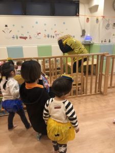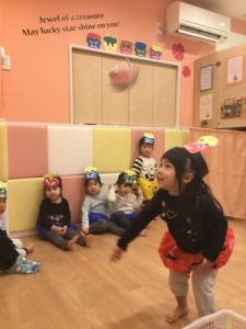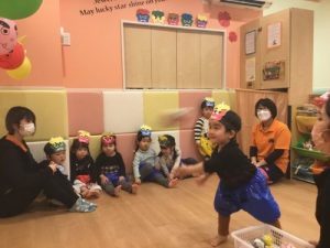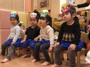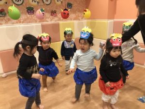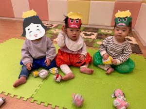 こちらは0歳児クラス可愛いもも組?鬼さん!色も揃えてばっちり決まっていますね?