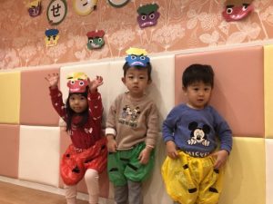 こちらは1歳児クラスいちご組?鬼さん!いちごさんは好きな色のパンツを自分で選びました?