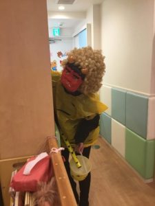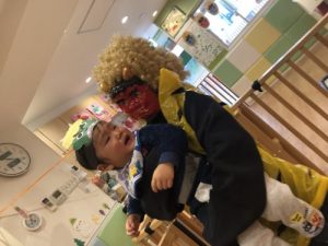 鬼さんはあいたたた、、と退散です!みんなの力で鬼に勝つ事が出来ました!?今年も一年元気に過ごせますように!