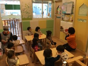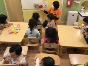 絵も可愛く、ほっこりする温かいお話にお子さまも釘付けで見ていました?