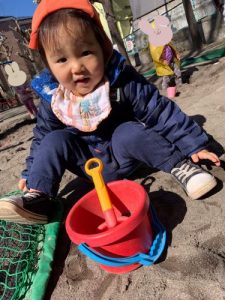 もも組さん?は靴を履いてお散歩やお砂遊びを楽しみました。靴を履くようになってからレジャーシートの上だけなく、公園全体を歩き回るようになり広い世界を大喜びで感じていましたよ??