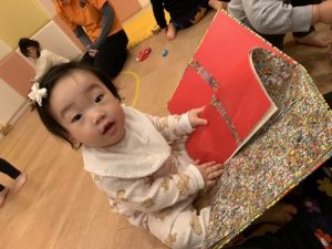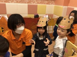 最近、2歳児さんは表現遊びに興味を示し職員たちのする「劇」を楽しんでいます?