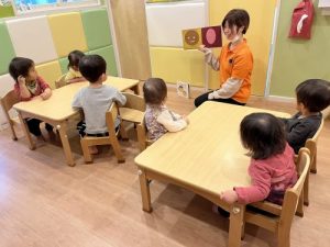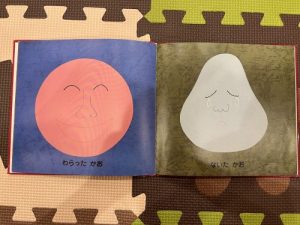 みんなで「ねむった かお?」や「いたずらな かお?」など色々な顔を作って絵本を見ていますよ。