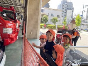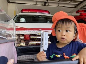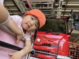 また、お散歩で近くの消防署にも行ってきました。みんな、消防自動車が大好き?大興奮で、「う〜う〜!」と消防車の真似をして、まばたきを忘れているくらい、目を見開いて消防車に釘付けでした☺️