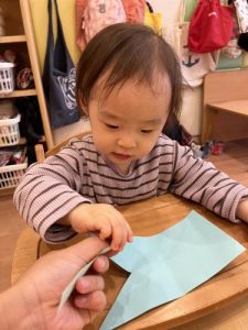 出来上がると「みて~~!」と言うように、保育者に作品を差し出して見せてくれました(*^^*)