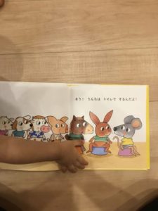 この絵本をきっかけにりんご組?さんは、自分から「おトイレに行く!」と言い、トイレに座る姿が見られました。
