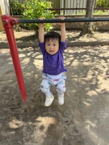 ぶら下がって遊ぶのも楽しいようで、「せんせい、みてみて!」とぶらーんとぶら下がって見せてくれました。