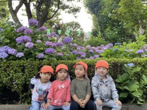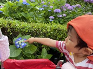 神社に行く道中でもアジサイがあり、「あ!先生アジサイあった!」と