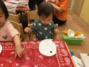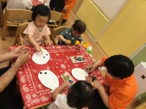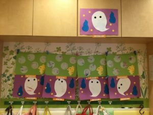 ??いちご組さんともも組さんは、おばけの形をした台紙にシールで顔とクレヨンで