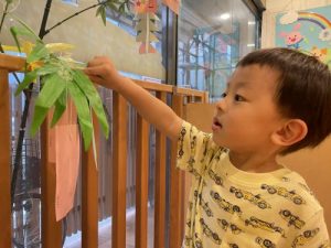 先週白山園に登場した笹を、お子さまたちは興味津々で眺めております?