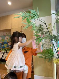 今年もお子さまと保護者様に笹に飾る短冊を書いていただきました✨