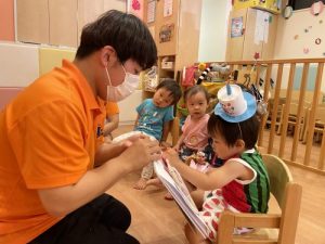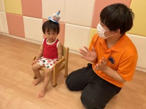 保育園に来て初めての主役で、ちょっぴりドキドキした様子も伺えましたが、みんなから「おめでとう!」とお祝いしてもらったり、「ハッピーバースデー」のうたを歌ってもらったりし、嬉しそうなニコニコした笑顔が見られました!??