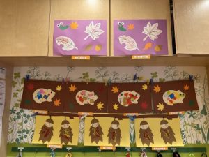 上手にクレヨンを使って、綺麗な落ち葉ができました🍂