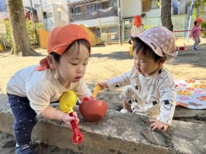 もも組🍑の2人も仲良く砂遊びを楽しんでいます💕