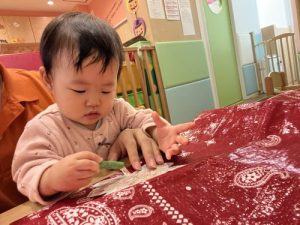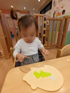 前まではなかなか難しかったクレヨン🖍も、自分で持ってトントントンッと色をつけていき成長を感じました☺️