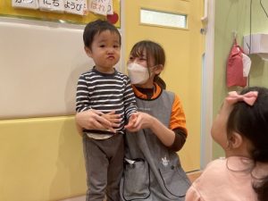 今まで職員が行っていたことを見ていたりんご組さんたちは、とても上手にご挨拶ができるようになっていました!