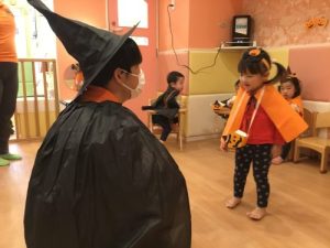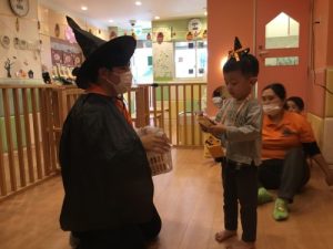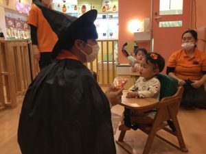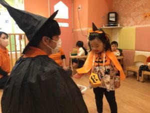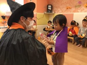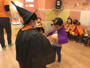 その後は、魔女から一人づつ、「トリックアトリ-ト」と言ってお菓子を貰いました。