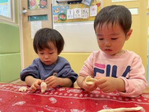 その後はみんなでコロコロ丸めたり、細長いものを作ったりと