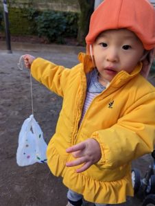 凧が空高く上がると、「わー!たかーい!」とニコニコ嬉しそうに指を刺し、