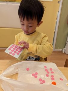 凧作りでは、シールをたくさん貼って、自分だけのオリジナルの凧に仕上げることができました!