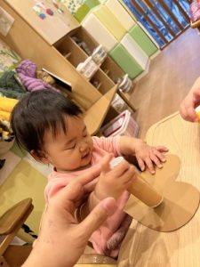 お迎え時にお渡しする姿も、嬉しい笑顔いっぱいでパパやママに渡していました。