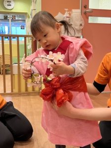ひな祭り当日の着物の衣装も着て、ひな祭りを楽しみにしているお子さまたちです🌸