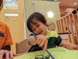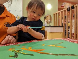 また、菜の花にも色を替えてペッタンペッタン!! 素敵なお花が描かれて、ご満悦な様子で、可愛らしい笑顔をたくさん見せてくれていました💓