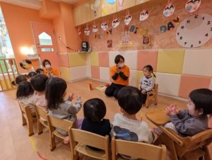 ♫ハッピーバースデー~♪のお歌を歌いお友だちから「おめでとう~!!!」のお祝いの