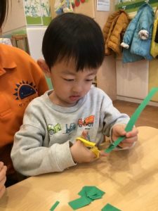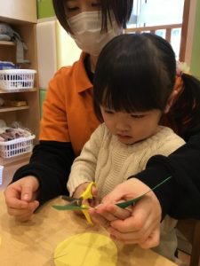 花びらを切った後は、葉っぱをチョキチョキ、以前より力の入れ具合の調整ができるようになり、上手になってきました✨