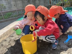 今日は、スコップやバケツを使ってケーキを作っていました🎂