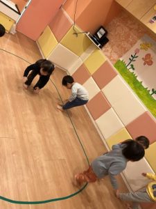 徐々に早くなっていくリズムにお子さまたちもとっても楽しんで行うことができています😊
