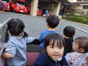 保育園に戻ってくると、園長先生に「しょうぼうしゃみたよ!!」「サイレンなったの!!」と笑顔で嬉しそうにお話ししていましたよ☺️