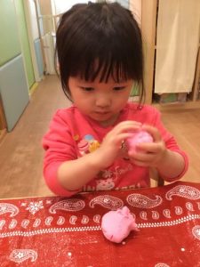 お友だちのことを思い浮かべ、ワクワクしながら作っているりんご組さんでした✨
