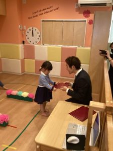 卒園式当日お名前を呼ばれると、「はい」とこれまでで1番かっこいいお返事をして、