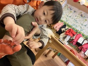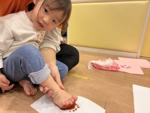 足の裏🦶に絵の具をペタペタ🎨ヌルっとした感触に
