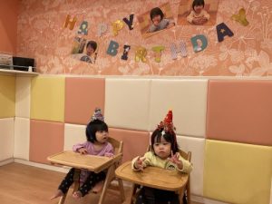 今週は、今年度入園された4月生まれの双子のお友だちと1歳児さんのお誕生日会をしました