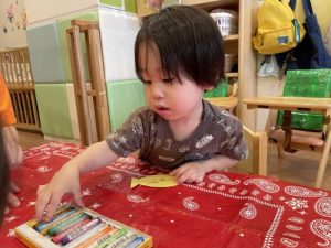 クレヨンでは「どんな色が好き?」という歌を保育士が歌うと