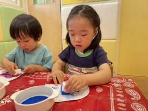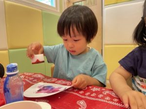 絵の具でかき氷に色を付けるのを楽しみました🍧