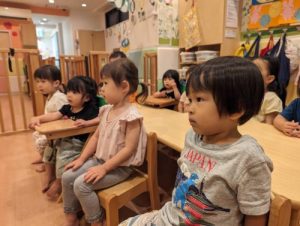 英語が大好きなお子さまたちはお椅子に座り
