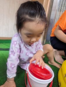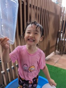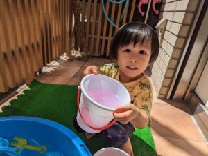 「見て見てー」と水鉄砲も上手に使えるようになりました🔫