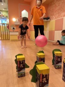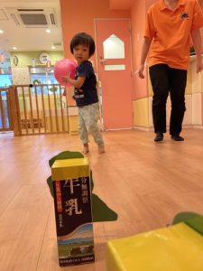 アンパンマンの的に向けてボール🏐をコロコロコロコロ…