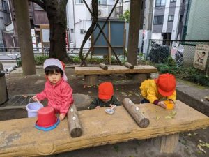 おままごとが大好きなお子さまたちは、お外でもお店屋さんごっこをして楽しんでいます♪
