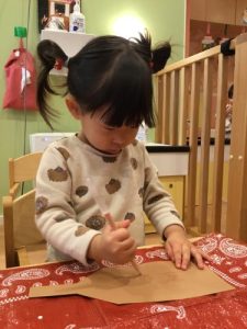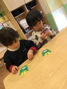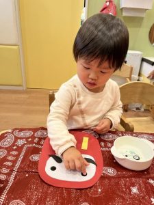 だるまさんは、「だるま、こわい!」っと言っていましたが、上手に可愛くお顔を作ることが出来ました。