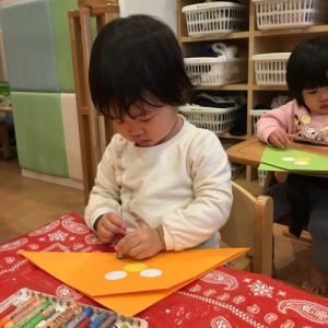 保育士の「お片付けしよー」の呼びかけに、「おやつ食べたい🍪」と一生懸命おもちゃお片付けするお子さまたちです^^