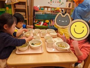 そして1月から、りんご組さんはエプロンを外しての給食にも挑戦しています🍚