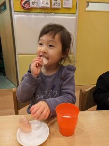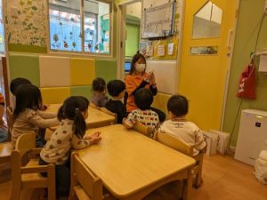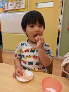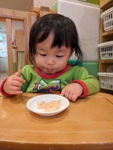 朝の歌とおやつの歌を歌うと、お待ちかねの『おやつの時間』です