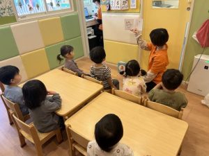 お子さまたちも「なんのおと?」と言い耳に手を当てながら聞くのを楽しむ姿があります。