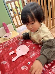 保育園では、♡ハッピーバレンタイン♡のポストカ―ドを作りました😃