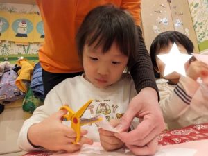 りんご組になって初めて使ったハサミも、最初は持つところから練習をし