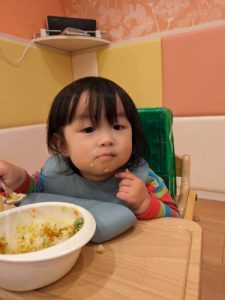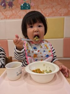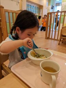 保育園に戻ると、お着替えをして、まちにまった給食のお時間です😋